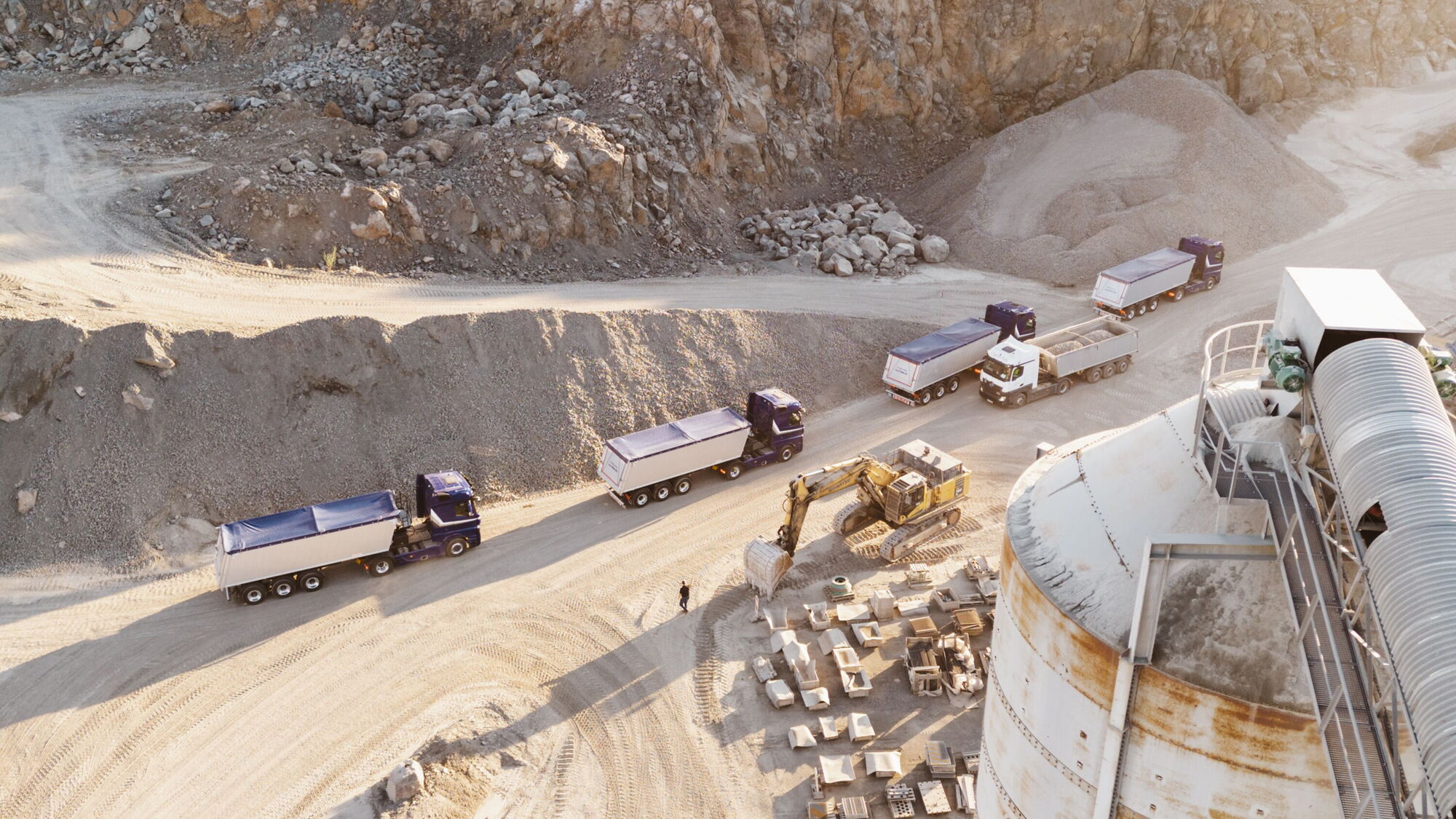 Zu den verfügbaren Fahrzeugaufbauten gehören Aluminium- und Stahlmulden von 28 - 50m³ für Schüttguttransporte aller Art ebenso wie Aufbauten für Silotransporte. Derzeit beträgt der gesamte zur Verfügung stehende Fuhrpark der Firma Stolz 38 Fahrzeuge (37 Sattelzüge, 1 Tandemzug). Alle Fahrzeuge erfüllen die derzeit höchste Emissionsklasse EURO 6.